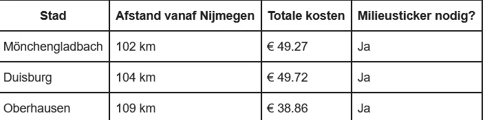 Op haar website heeft Wegenvignetten.nl een overzicht van de kosten van een bezoek aan een kerstmarkt in 50 grote Duitse steden. Daarbij staat ook per stad of een milieusticker nodig is en een tip om voordelig (vaak buiten het drukke centrum) te parkeren.