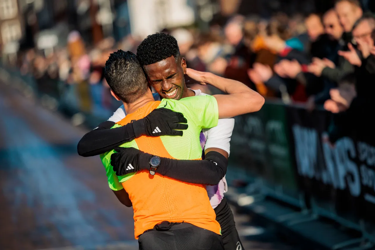 Onder aanvoering van haas Richard Douma, bereikte het duo Kipchumba en Gelant gezamenlijk de voet van de bekende Peeskesbult. Na de eerste passage door het Bergherbos trok Kipchumba door en loste de Zuid-Afrikaanse Gelant. De 35-jarige Keniaan liep onbedreigd naar de finish op de Klinkerstraat. Gelant volgde in 1:02:30. Khalid Choukoud liep een sterke race en werd derde in 1:04:10. Nederlands podium Op het nationale podium werd Khalid Choukoud geflankeerd door Abdi Hassan en Ties van den Hurk. Hassan pakte de tweede plaats in een persoonlijk record van 1:05:03. Team Zevenheuvelen atleet Van den Hurk volgde in 1:05:37. Abdi Nageeye mengde zich niet in de strijd om de ereplaatsen. Vooraf gaf hij al aan niet voor een snelle tijd te gaan, omdat hij na de New York Marathon wekenlang niet trainde en nu nog in opbouw is richting een voorjaarsmarathon. Hij kwam binnen op de zevende plaats in 1:05:55.